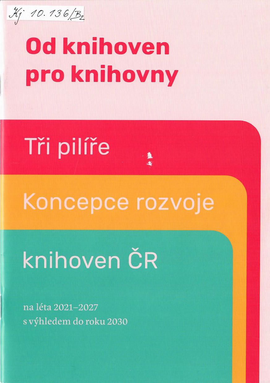 Od knihoven pro knihovny: tři pilíře Koncepce rozvoje knihoven na léta 2021-2027 s výhledem do roku 2030. Praha: Městská knihovna v Praze, 2020. 17 stran, 5 nečíslovaných stran. Dostupné také z: https://issuu.com/mestskaknihovnavpraze/docs/brozura-koncepce-knihoven-web