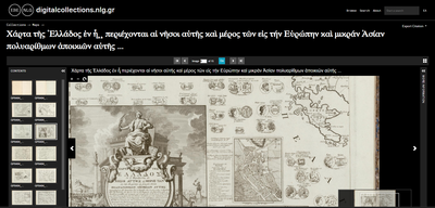 Obr. 1 Pohled na digitální knihovnu Národní knihovny Řecka - mapa, zdroj: https://digitalcollections.nlg.gr/